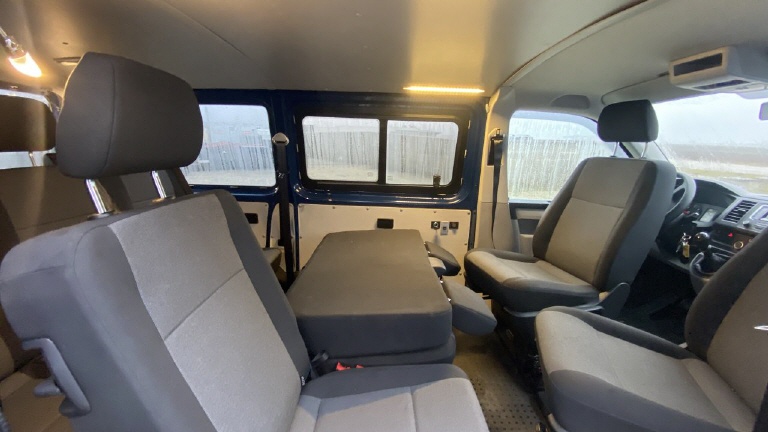 Und er ist ein echter Campingbus. 4 Schlafplätze, 5 Sitzplätze, 12V und 230V Stromversorgung, Kühlbox und Gaskocher, Diesel Wohnraum- und Standheizung, viel Stauraum rundum und Platz für alle am großen Tisch.